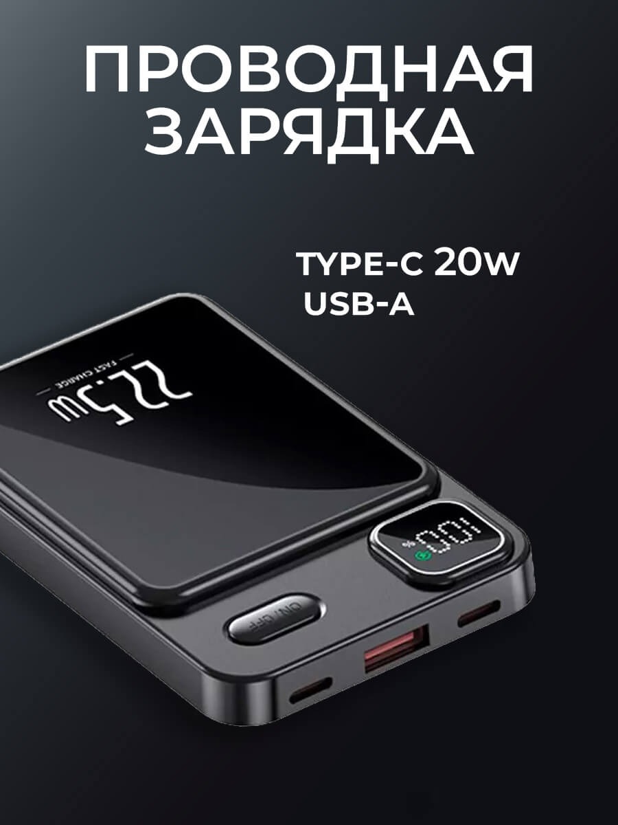 Благодаря магнитному креплению, вы можете легко и надежно прикрепить телефон к повербанку, что обеспечивает дополнительную безопасность при использовании. Кроме того, этот powerbank оснащен разъемом Type-C, который позволяет использовать быструю зарядку и заряжать сам повербанк быстрее.