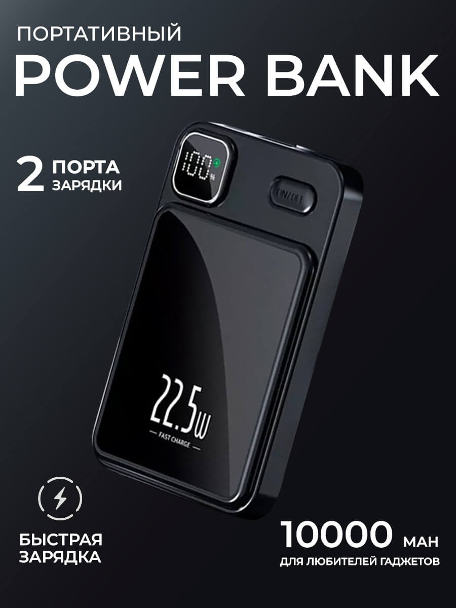 Портативный повербанк с беспроводной магнитной зарядкой 10000 мАч для iPhone