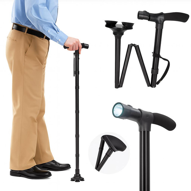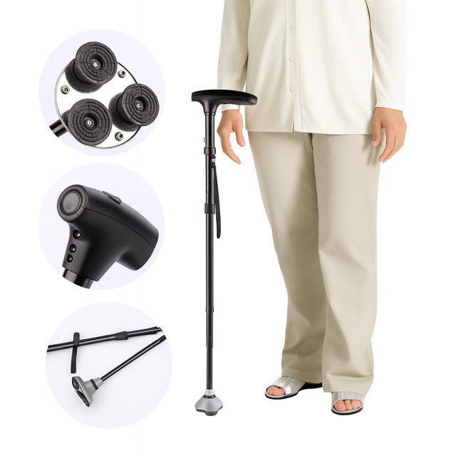 Сучасна складана тростина для людей з обмеженими можливостями, поєднує в собі зручність, безпеку та практичність. Обладнана вбудованим LED-ліхтариком, вона забезпечує додаткове освітлення в темну пору доби, а складаний механізм робить її зручною для транспортування і зберігання. Регульована за висотою конструкція й ергономічна ручка забезпечують комфортну опору під час ходьби. Чудовий вибір для літніх людей і людей з обмеженими можливостями пересування