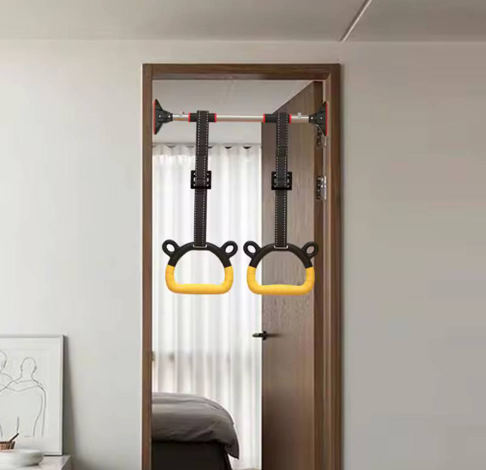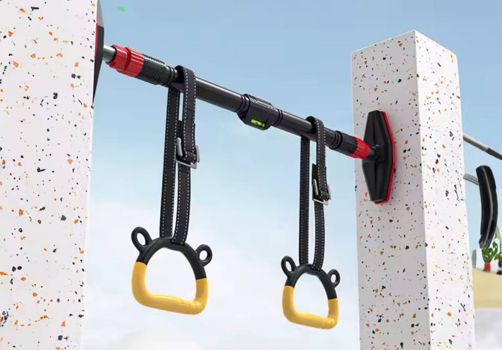 Турнік розсувний із кільцями — компактне рішення для домашніх тренувань, що дає змогу урізноманітнити вправи й ефективно опрацьовувати верхню частину тіла.